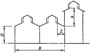 注:當Z/h>2.3時,建筑物的相關尺寸可不受限制。